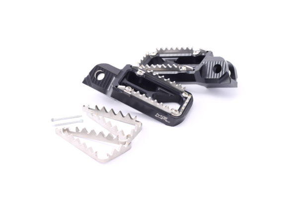 Geliefert mit 2 Satz Edelstahleinsätzen für „High Grip“ Enduro Einsatz oder für „Standard Grip“ Supermoto